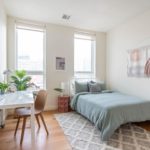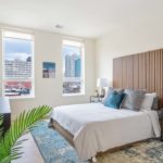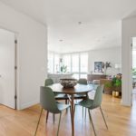 This three bedroom corner apartment at Park Francis faces east, overlooking the vibrant bumblebee mural on Erie Street and a picturesque, tree-lined street of classic brownstones.