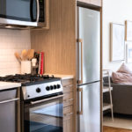 This studio at Park Francis features a unique alcove layout that provides a natural divide between living and sleeping areas, offering both comfort and versatility. Expansive windows brighten the home and highlight the high ceilings and hardwood floors. The modern kitchen includes stainless steel appliances and abundant cabinet space, combining convenience with thoughtful design.